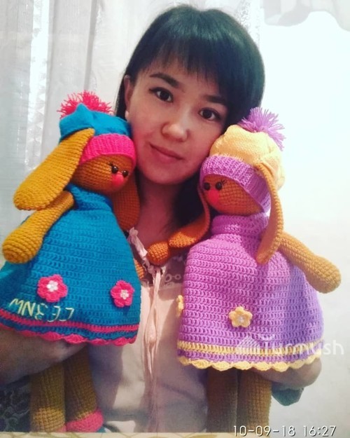 рукодельница, вяжет мягкие игрушки